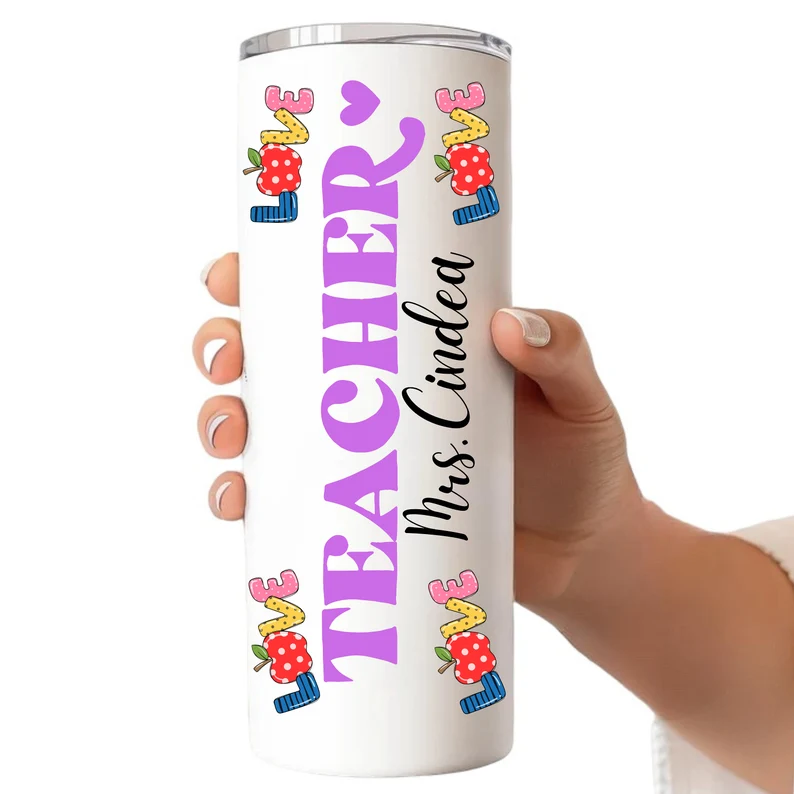 Teacher Name Skinny Tumbler | Custom Name Stainless Travel Cup