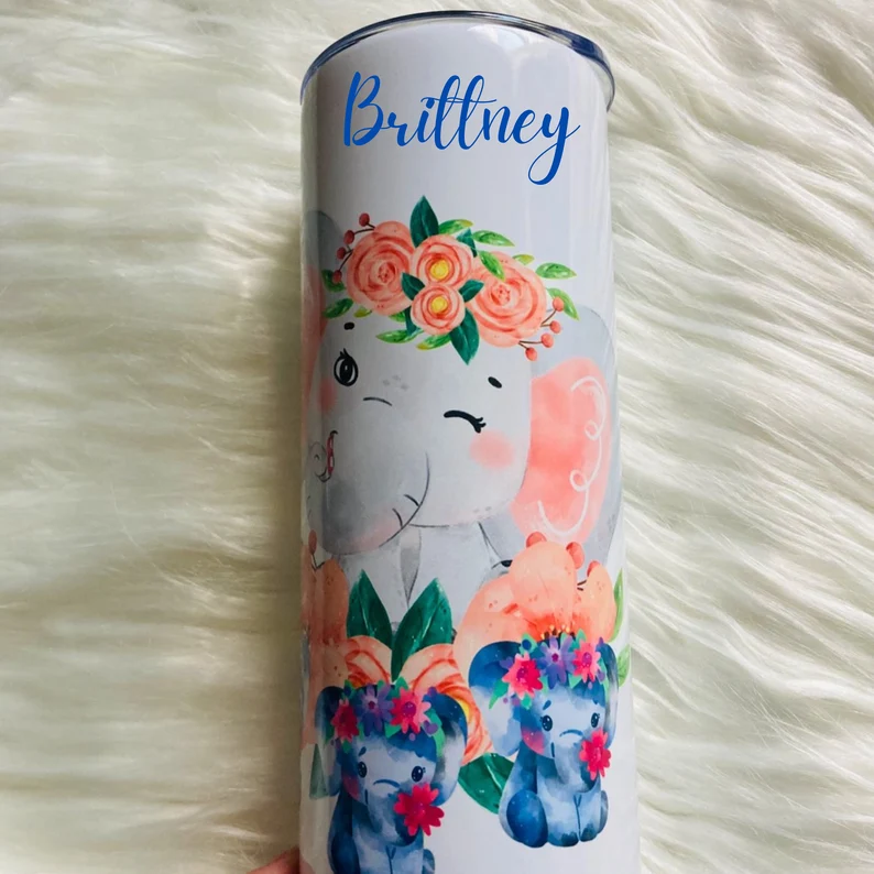 Custom Elephant Skinny Tumbler | Personalized Floral Name Cup