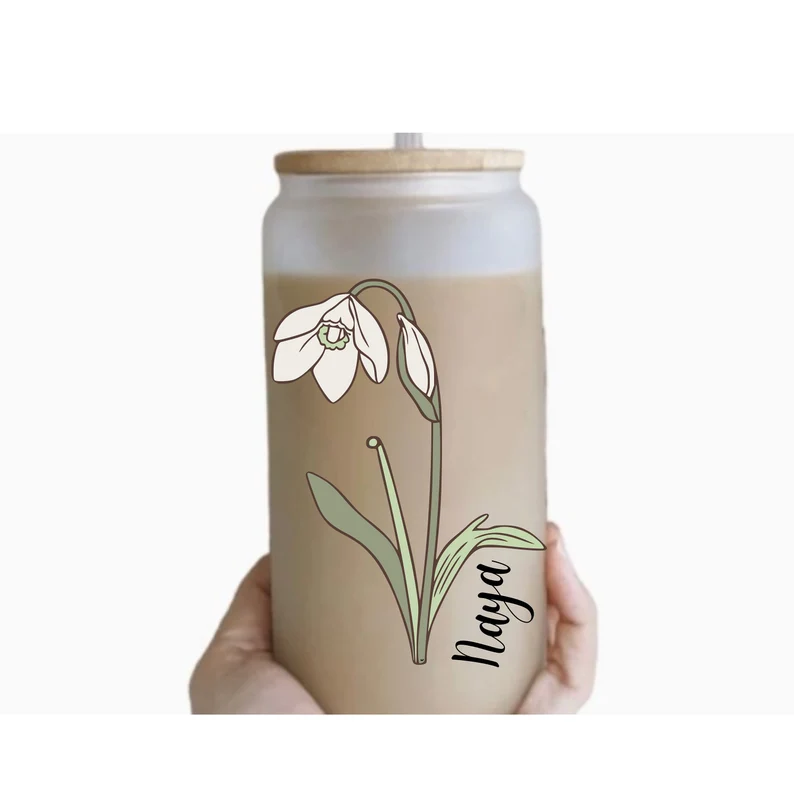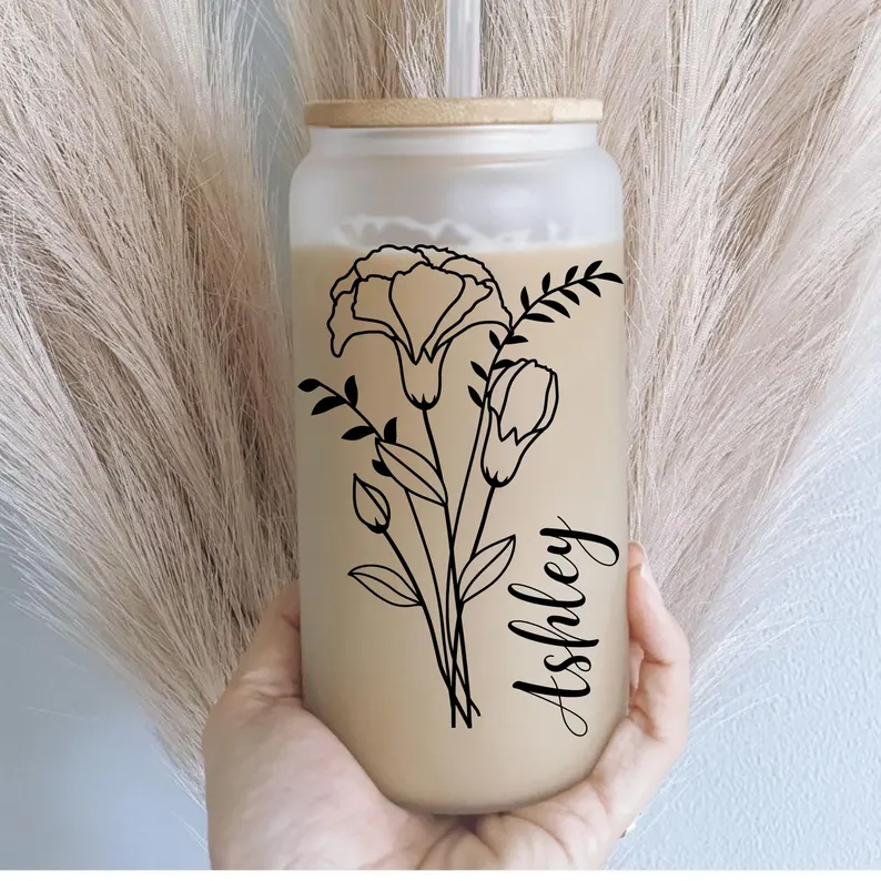 Custom Iced Coffee Glass Cup | Personalized Flower Cup