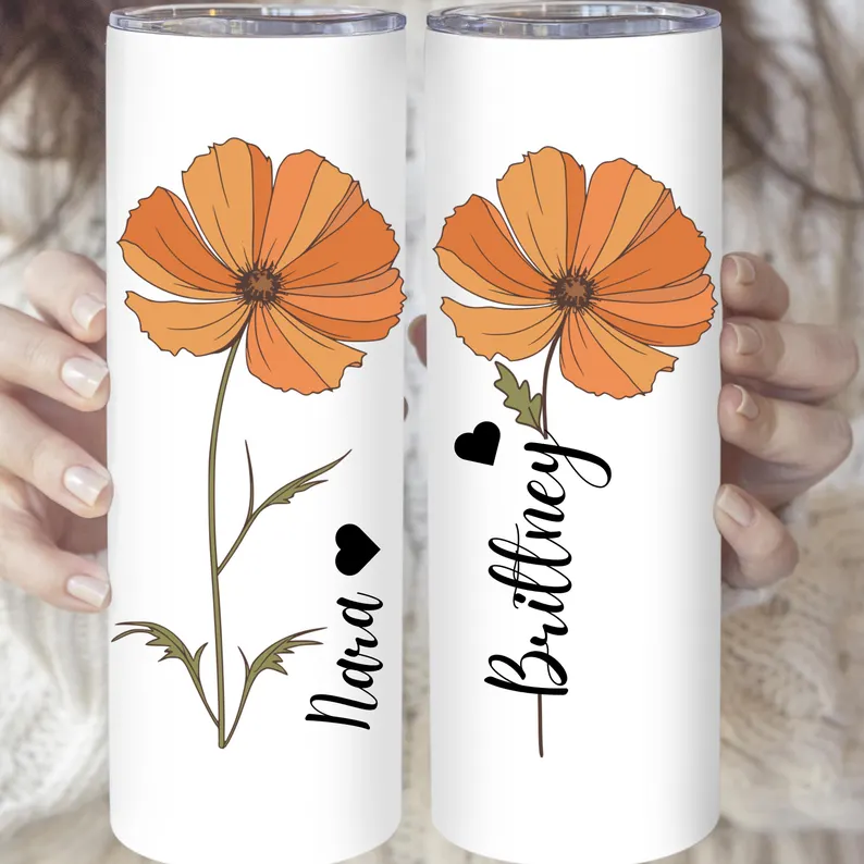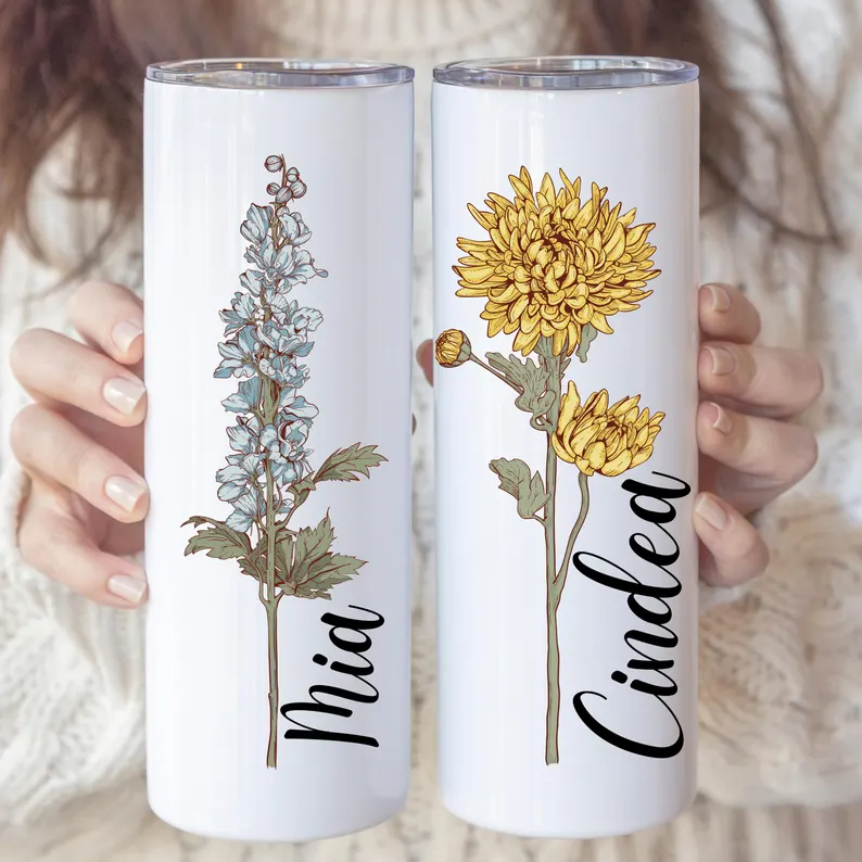 Custom Birth Flower Tumbler | Personalized Name Skinny Cup
