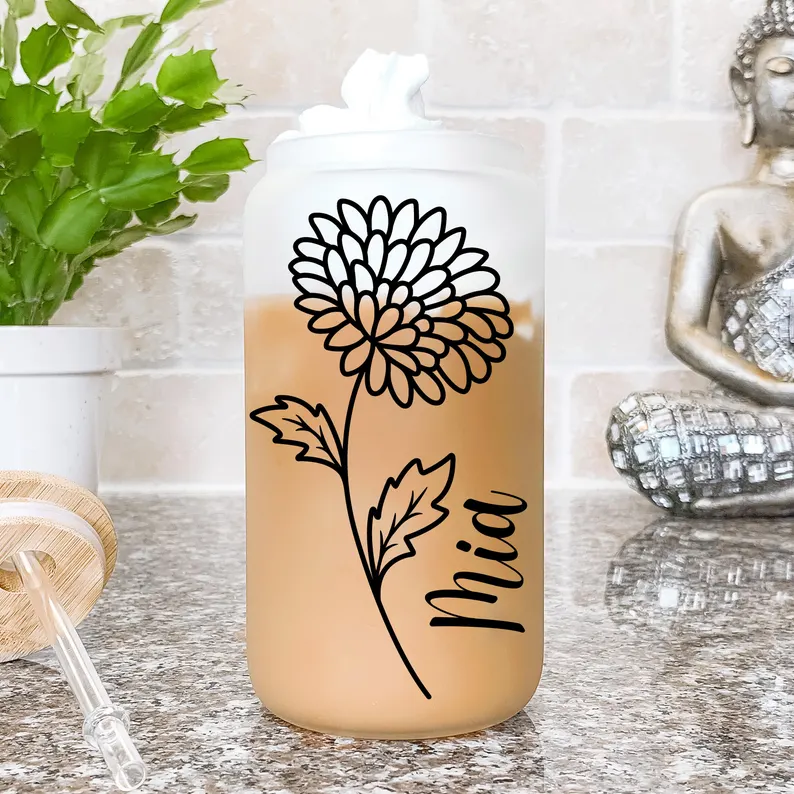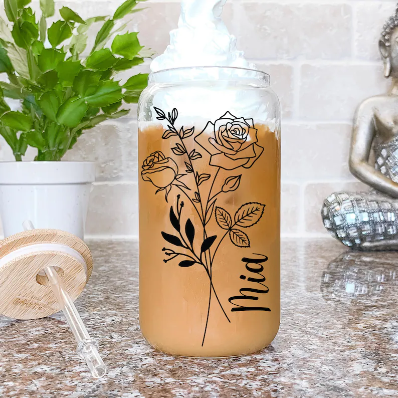 Custom Iced Coffee Glass Cup | Personalized Flower Cup